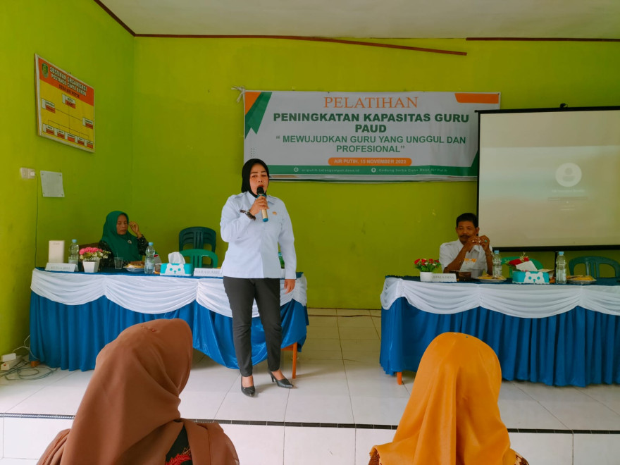 Kegiatan pelatihan guru PAUD di Desa Air Putih oleh Pemerintah Desa Air Putih berhasil diadakan dengan sukses pada hari Rabu, 15 November 2023. Kegiatan pelatihan guru PAUD ini dilaksanakan di Gedung Serba Guna desa Air Putih. Pelatihan ini diikuti oleh 5 guru PAUD yang terdiri dari Bunda PAUD, Kepala Sekolah dan Tendik.